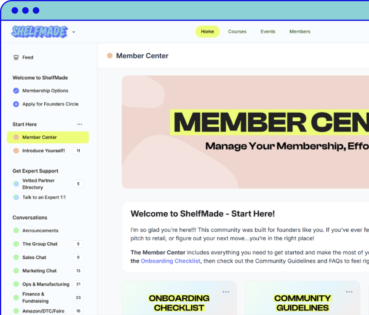 Whether you’re launching your first product or scaling into national retail, ShelfMade gives you the strategy, structure, and support you’ve been missing. Start free or unlock the full community experience with our paid memberships