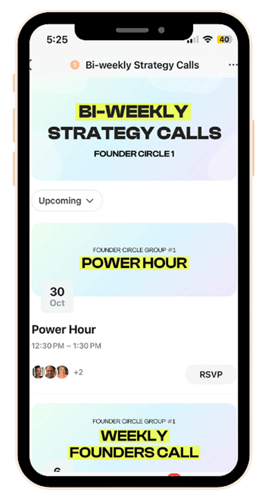 The Founder’s Circle is intentionally small, just 8–9 founders per pod.. so every member gets high-touch mentorship.